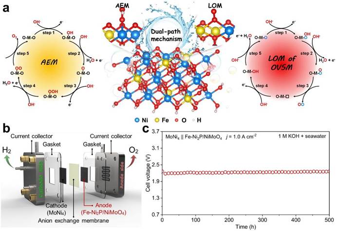 AEM-LOM耦合机制的催化反应路径及阴离子交换膜电解水性能