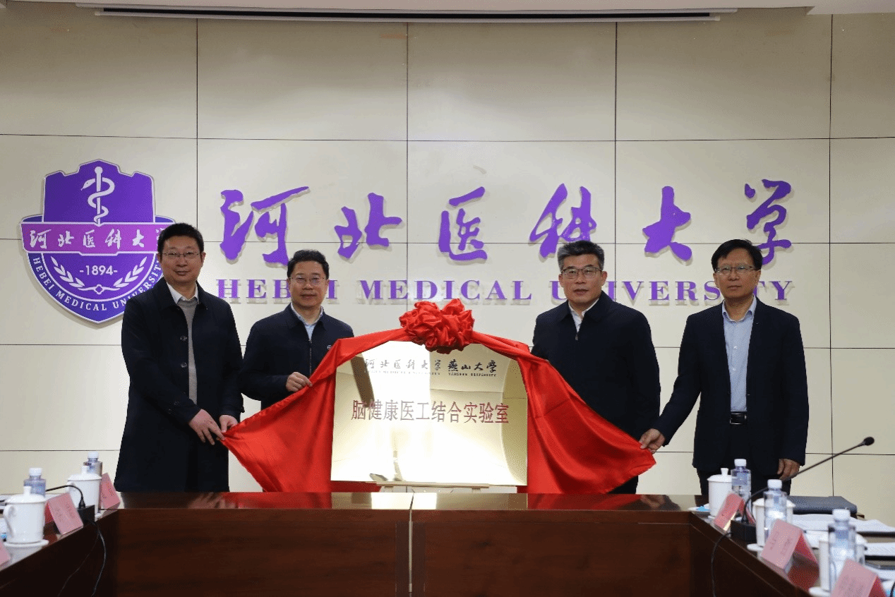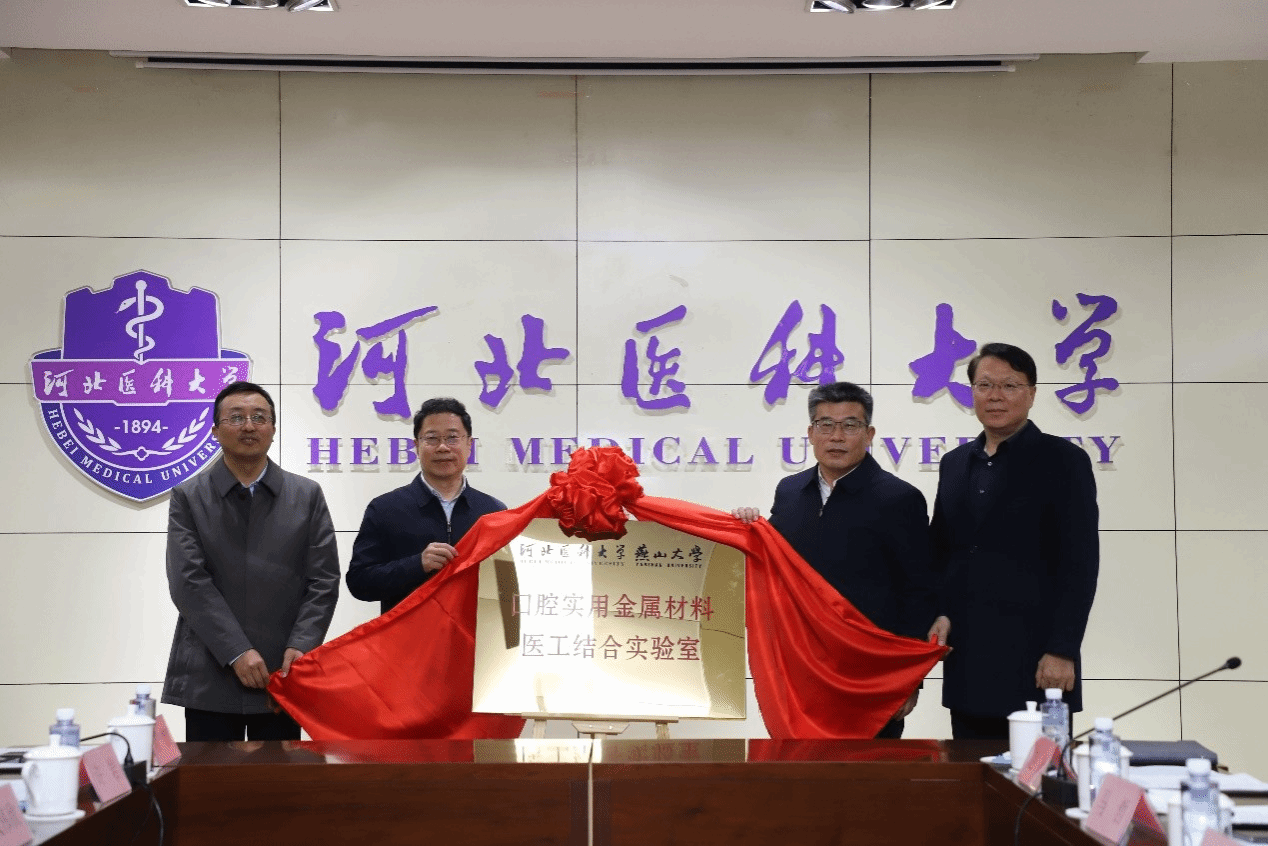 会上,河北医科大学科技处处长申海涛介绍了两校前期合作情况以及下一步工作计划,其他与会人员围绕科技创新、成果转化和人才培养等具体业务工作和科研合作内容进行了深入交流和探讨。双方领导共同为“河北医科大学-燕山大学脑健康医工结合实验室”和“河北医科大学-燕山大学口腔实用金属材料医工结合实验室”揭牌。