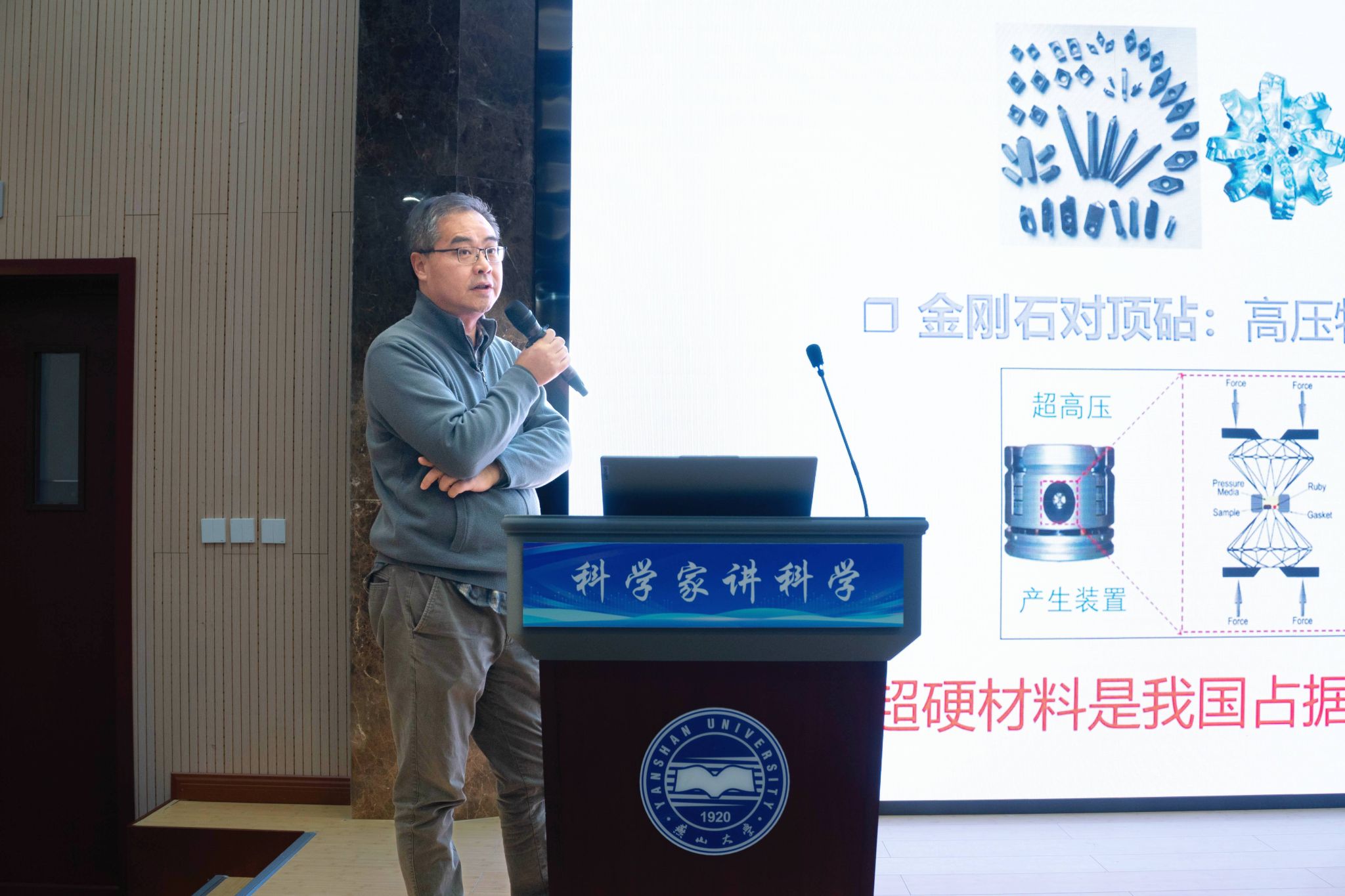 讲座活动由燕山大学科学技术研究院院长严书亭主持。他指出,科普工作是提升全民科学素养、服务社会的重要途径,燕山大学长期通过多种形式开展科普活动,积极推动科学精神传播与科研故事讲述。本次活动特别邀请到两位在材料科学领域具有深厚造诣的科学家,为师生带来一场生动而深刻的前沿科学分享。