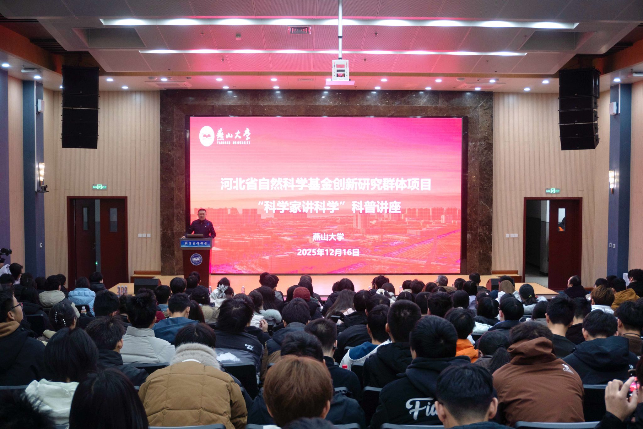 2025年12月16日下午,由河北省科技厅指导、燕山大学主办的2025年度“科学家讲科学”科普讲座活动在燕山大学西校区图书馆报告厅成功举行。本次活动依托河北省自然科学基金创新研究群体项目开展,旨在推动科研成果科普化,弘扬科学家精神,营造崇尚科学的校园文化氛围。活动吸引了240余名师生积极参与。